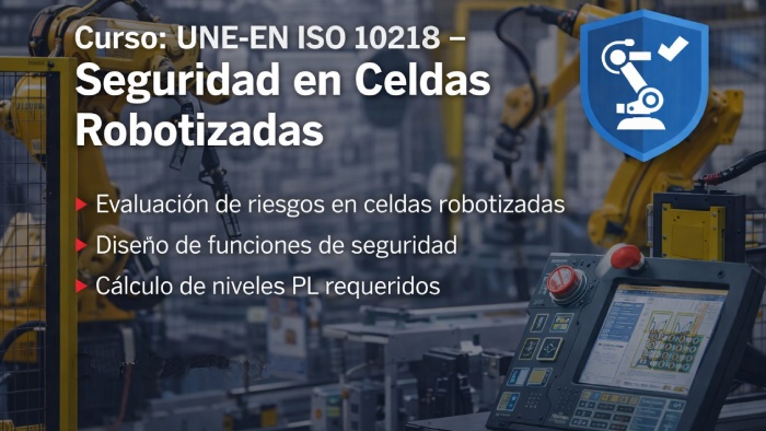 Formación especializada en los requisitos de seguridad aplicables a celdas robotizadas conforme a la UNE-EN ISO 10218. El curso aborda la evaluación de riesgos de la celda, el diseño de las funciones principales de seguridad, el cálculo de los niveles de prestaciones (PL) requeridos y su validación, incorporando un ejemplo práctico aplicado a entornos industriales reales.